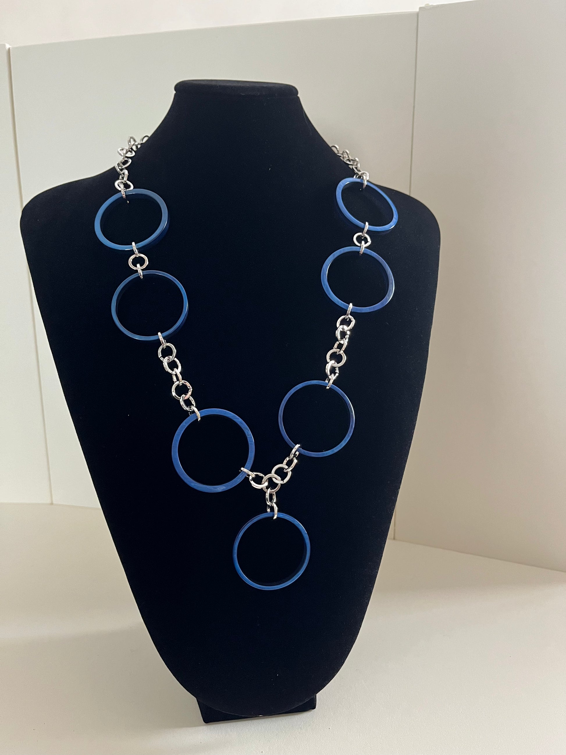 Necklace made of brass with nickel-free plating, alternating with regular circles of blue-dyed cow horn