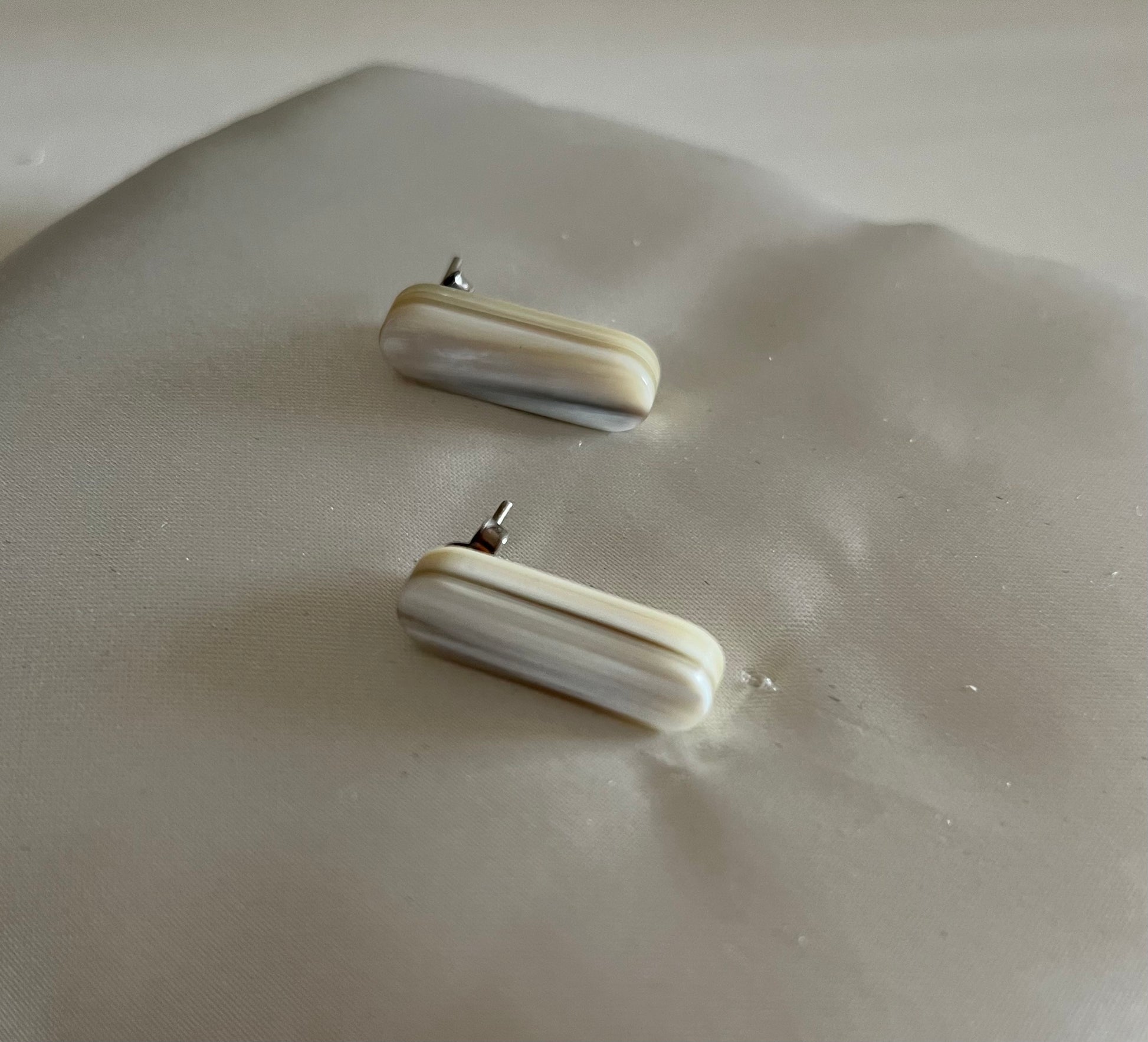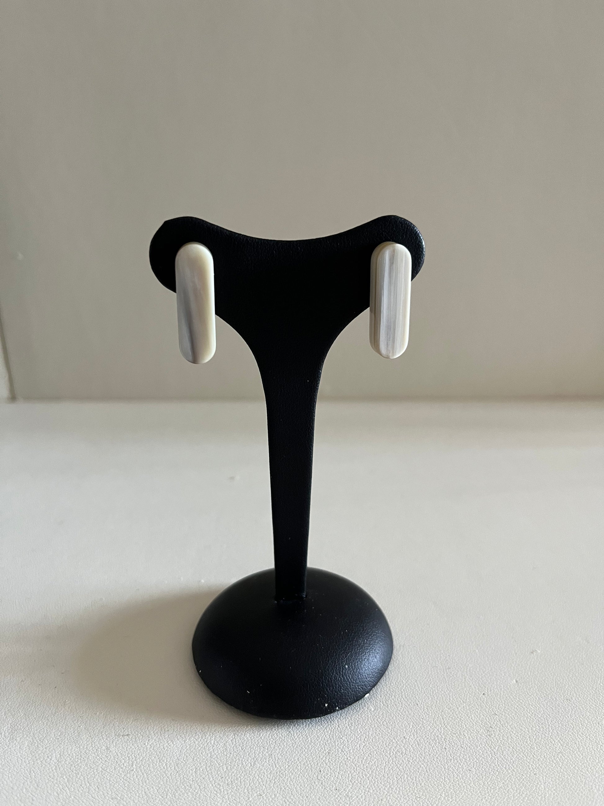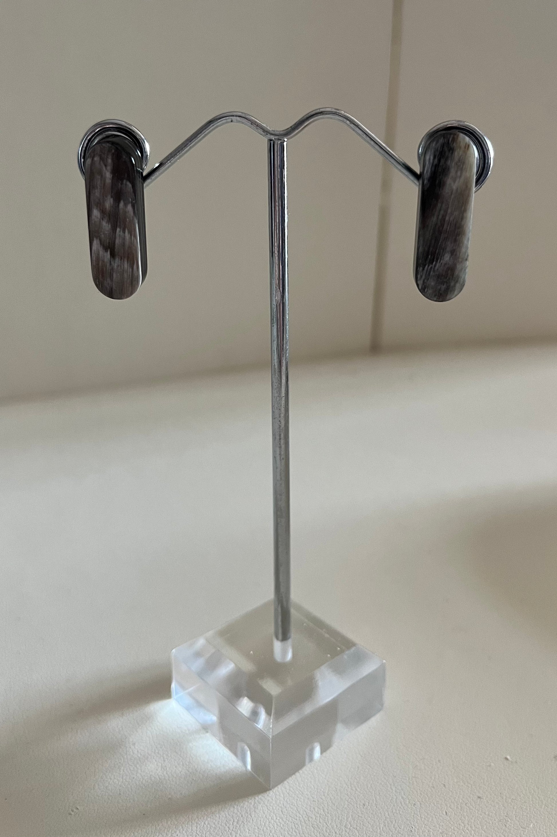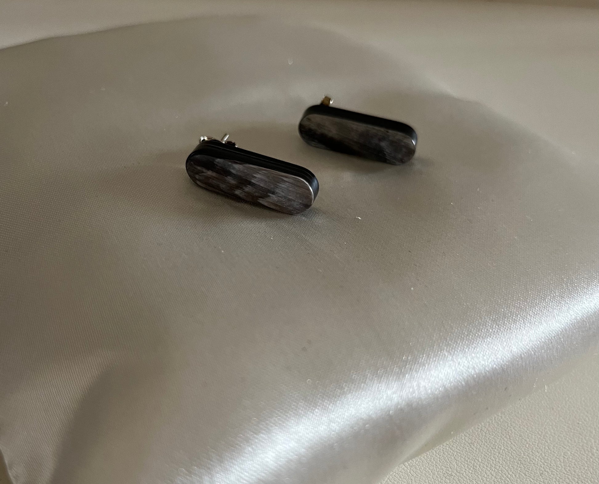Coppia di orecchini rettangolari a lobo. Corno naturale di bovino africano. Semplici ma eleganti adatti per essere indossati tutti i giorni.