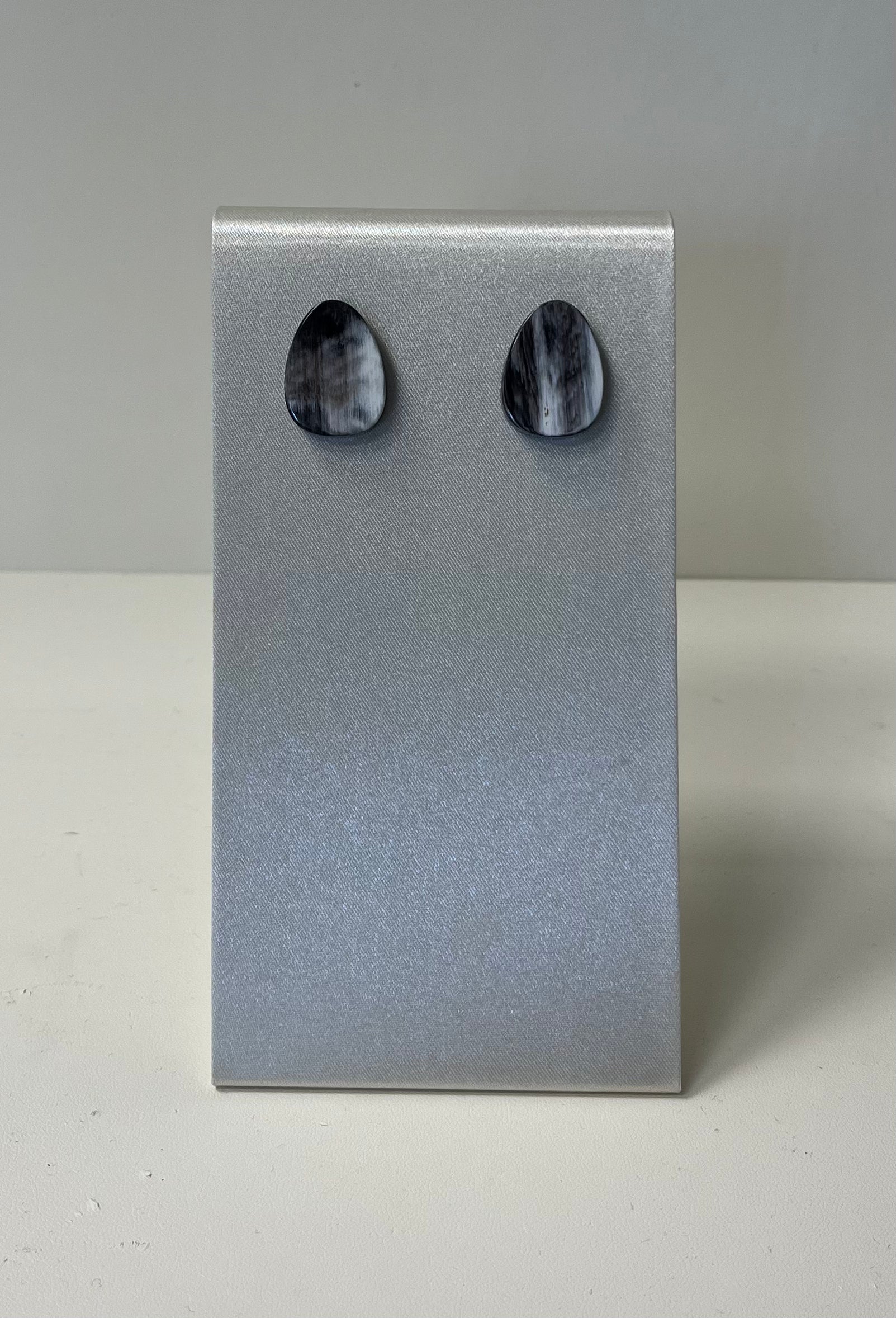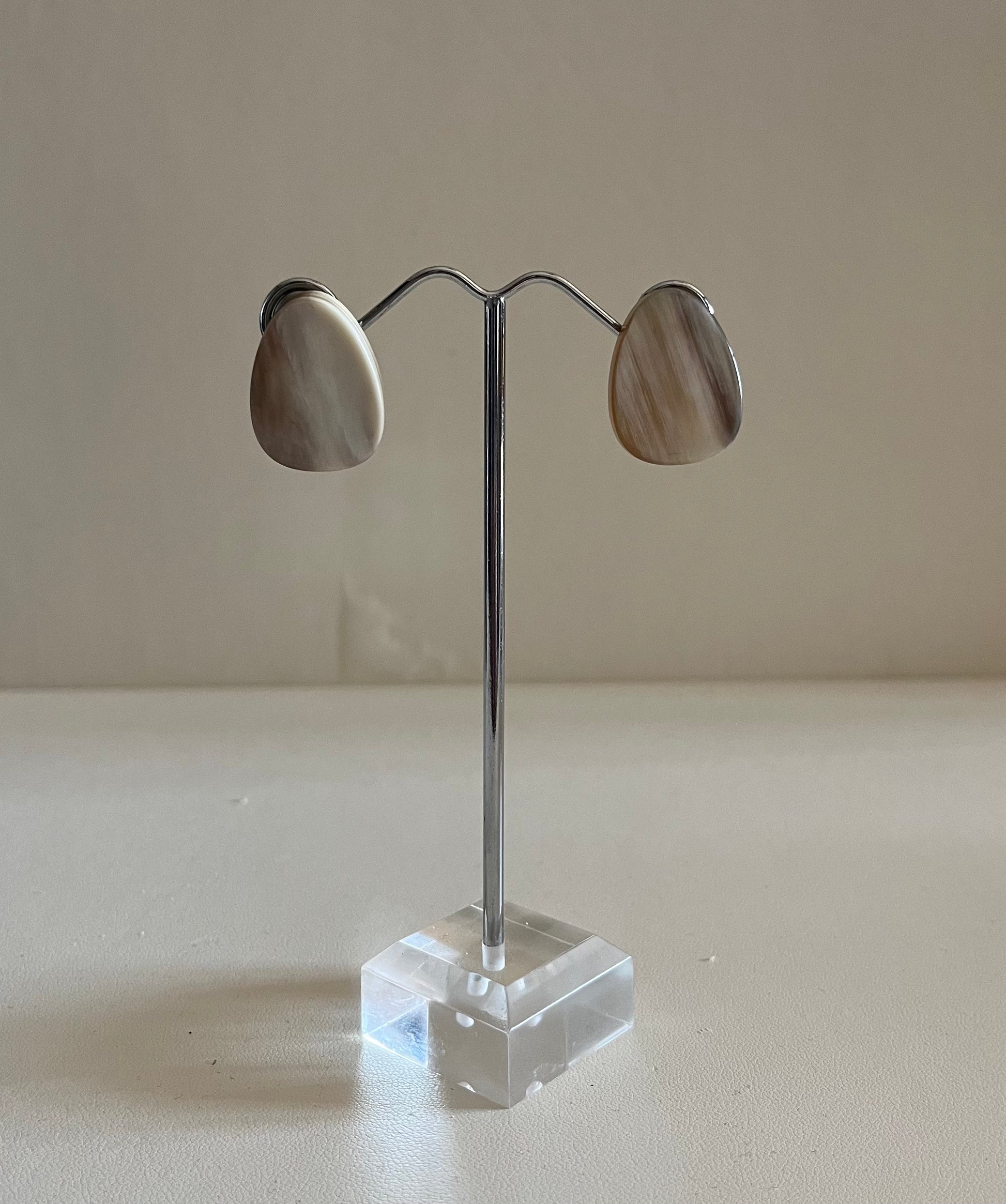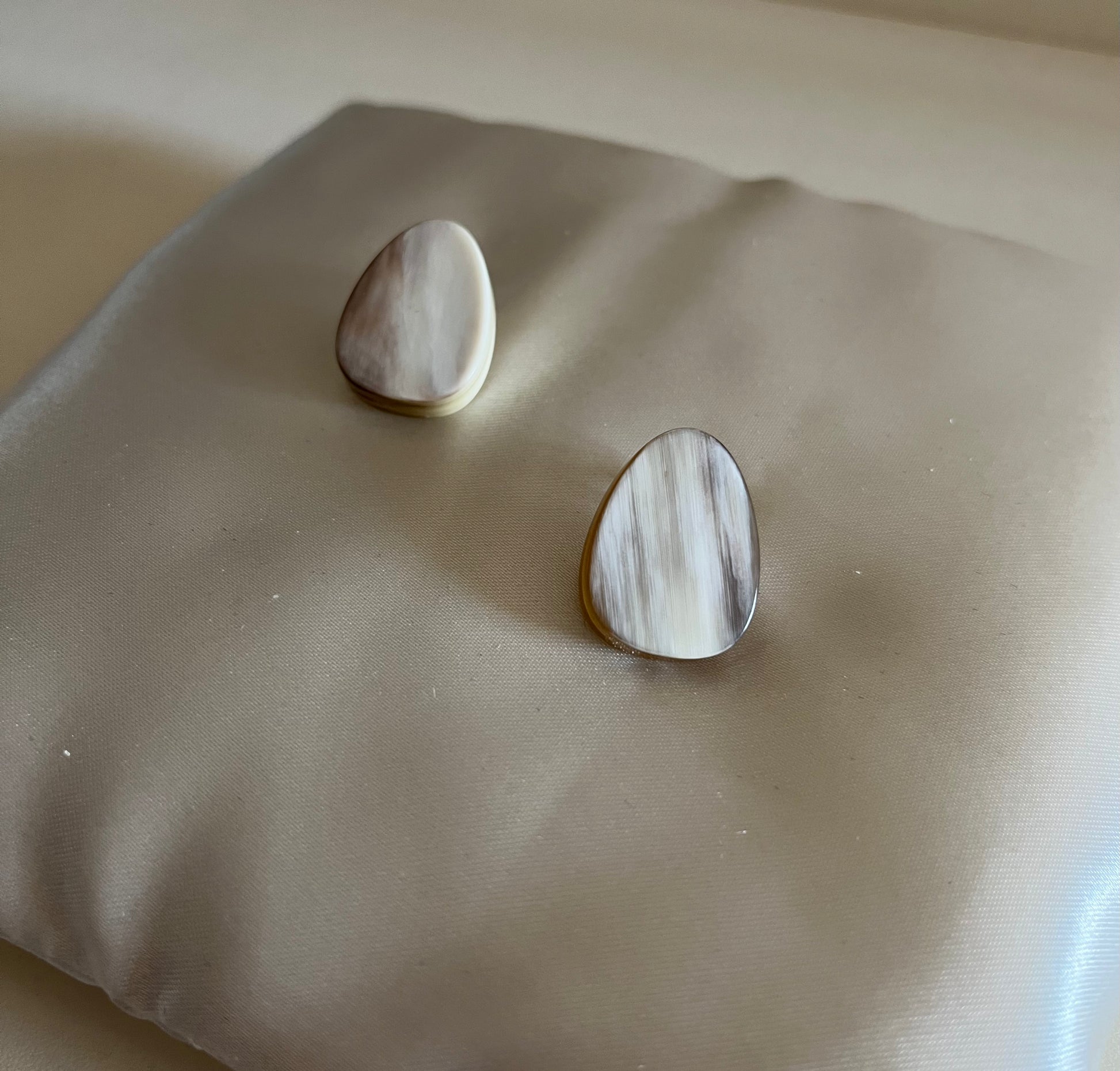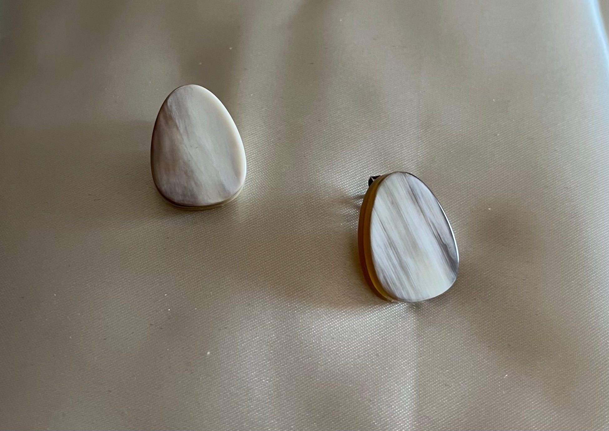 Coppia di orecchini a lobo a forma di goccia. Corno naturale di bovino africano.