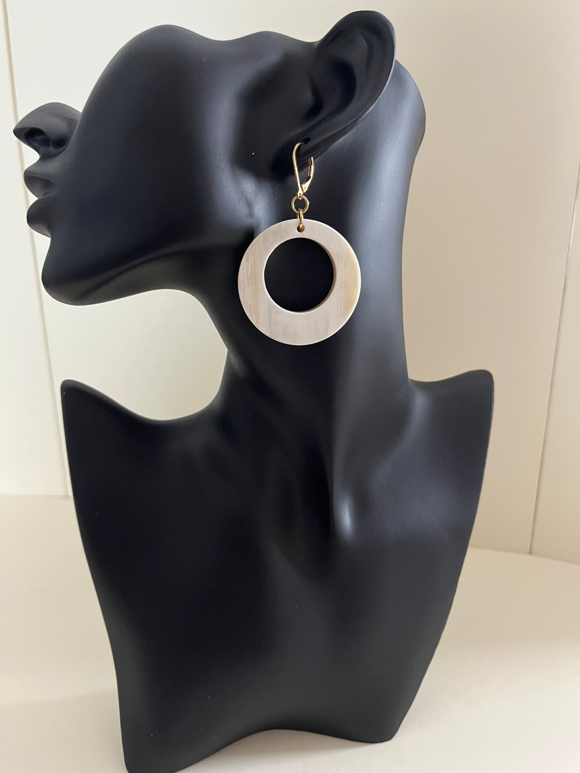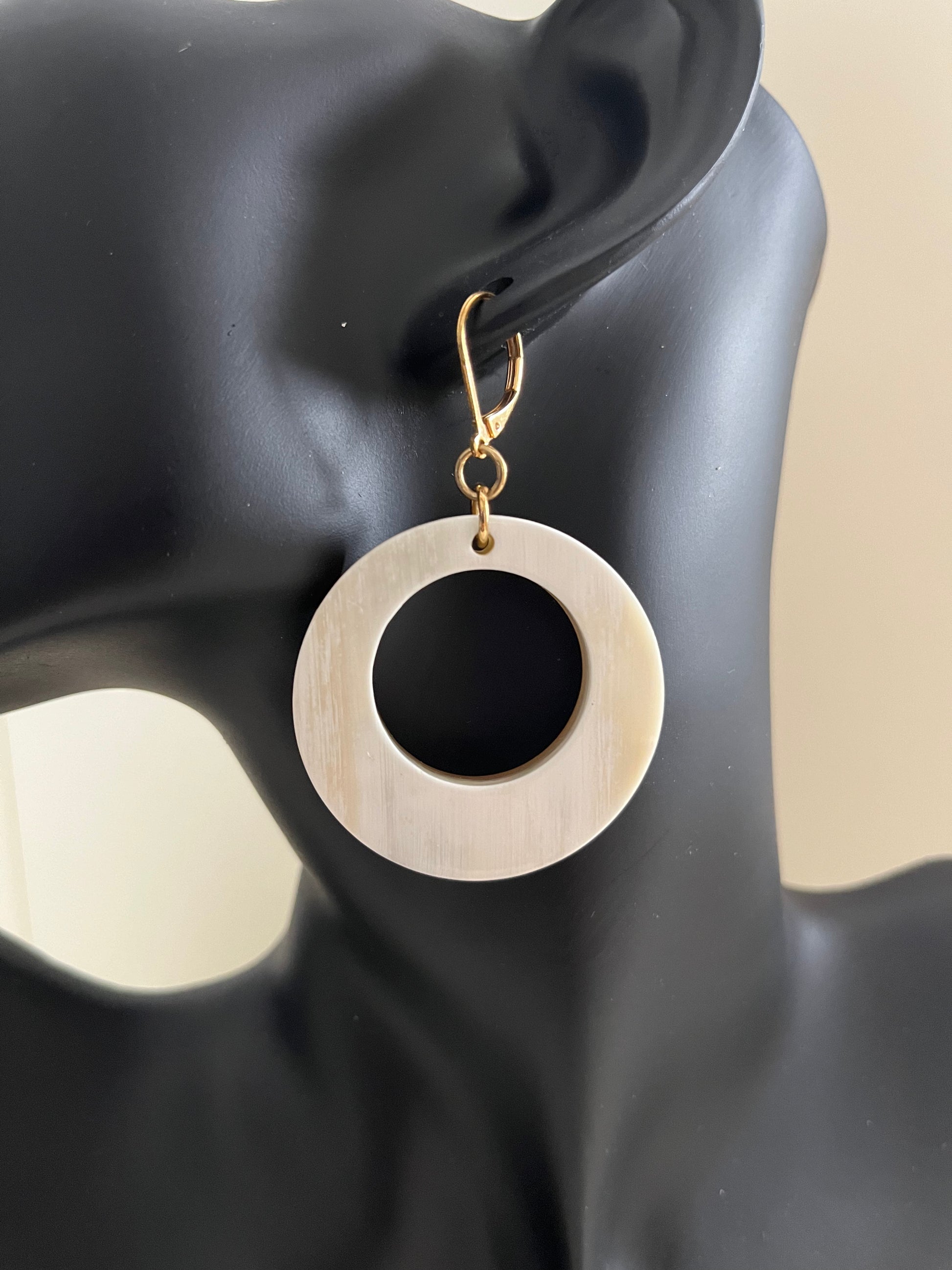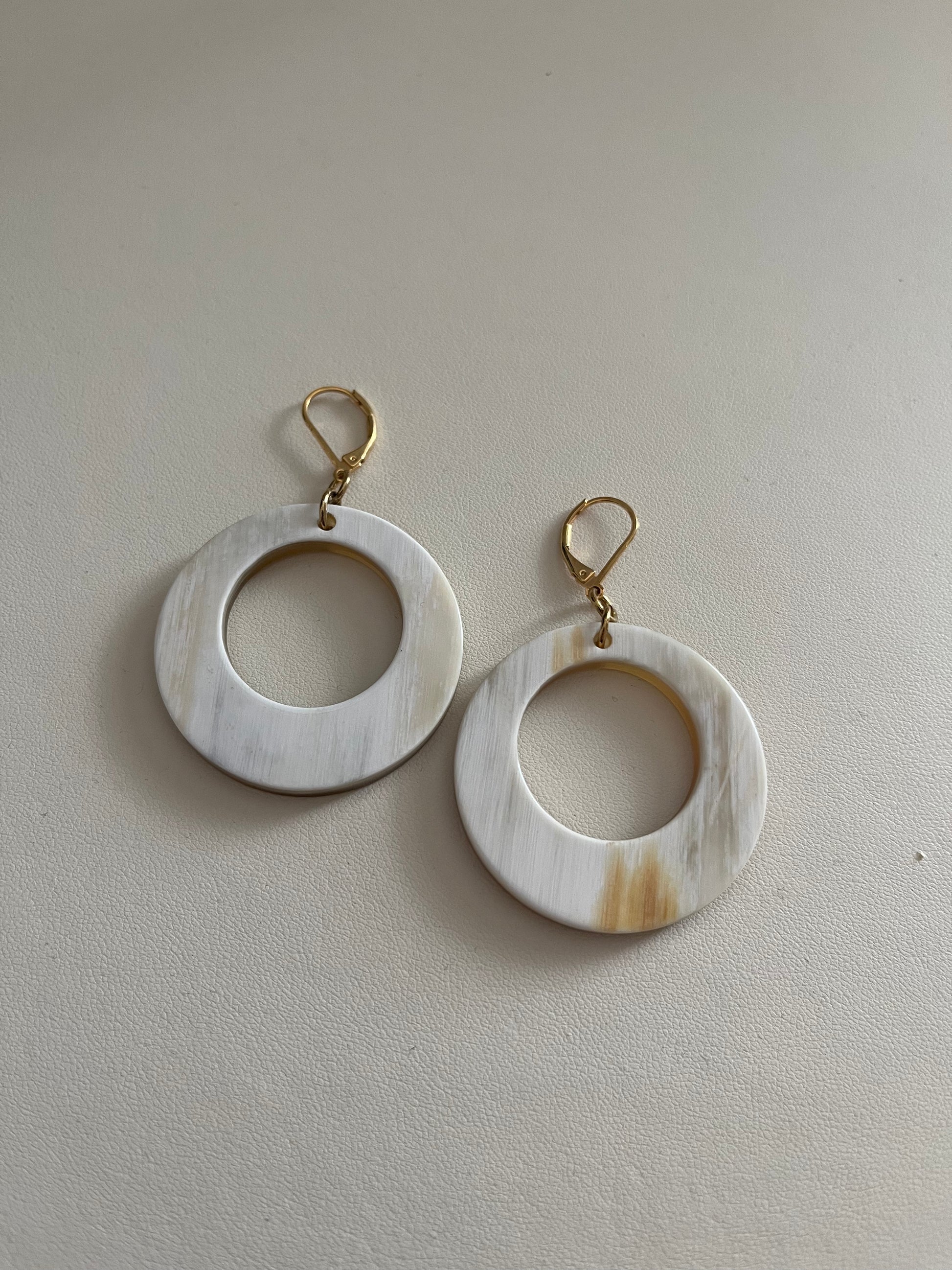 Coppi di orecchini tondi di corno bovino bianco naturale.