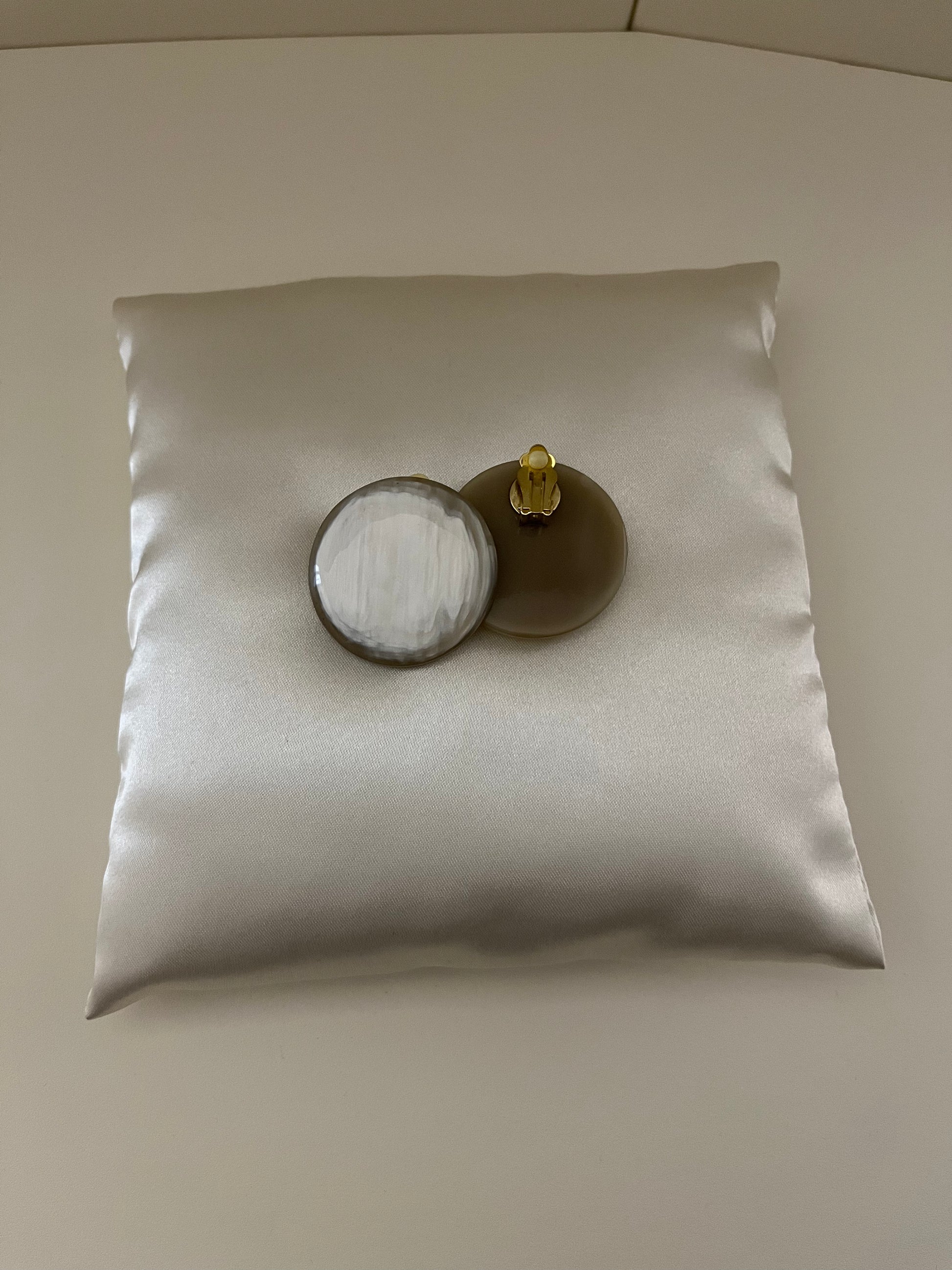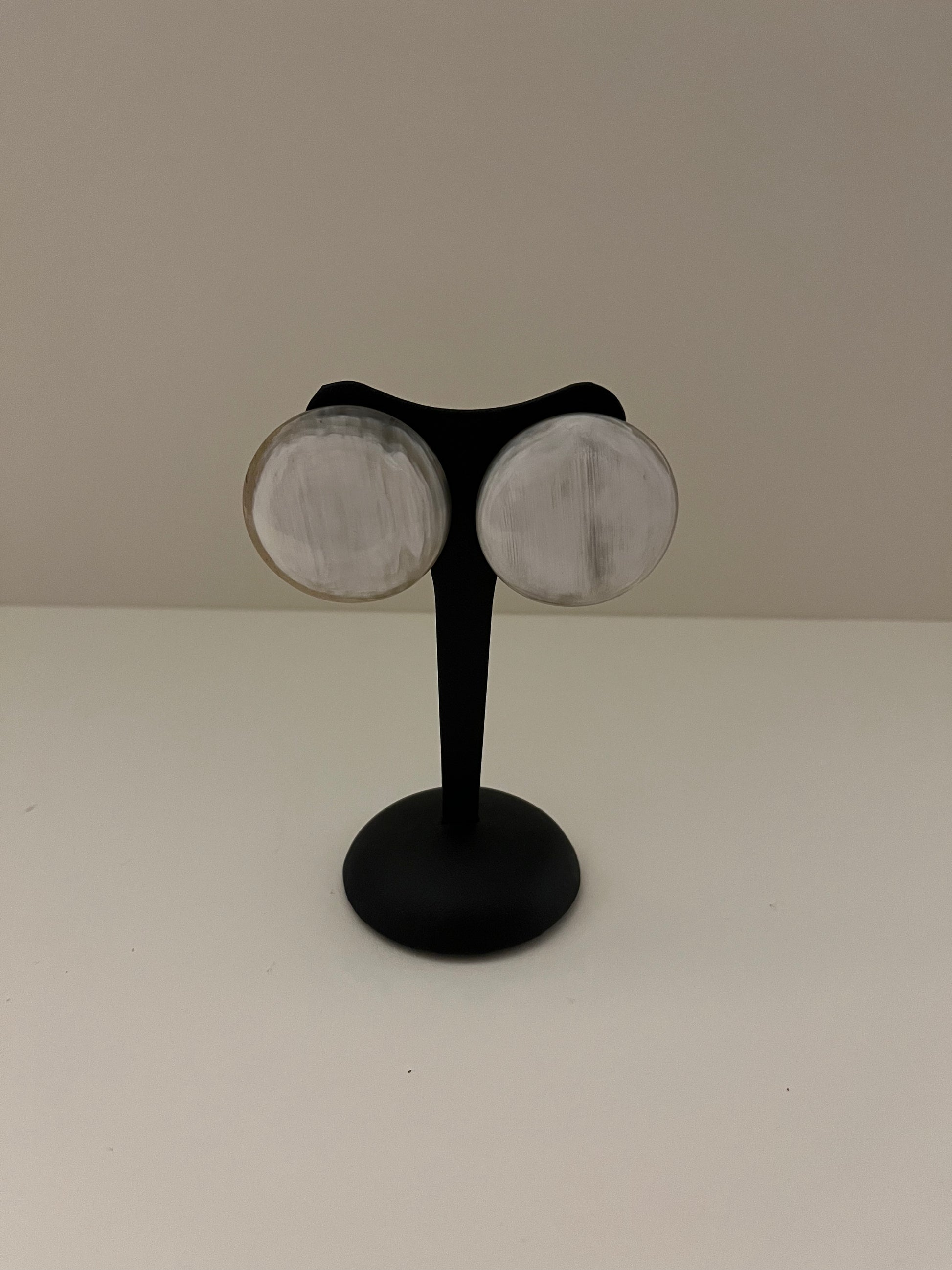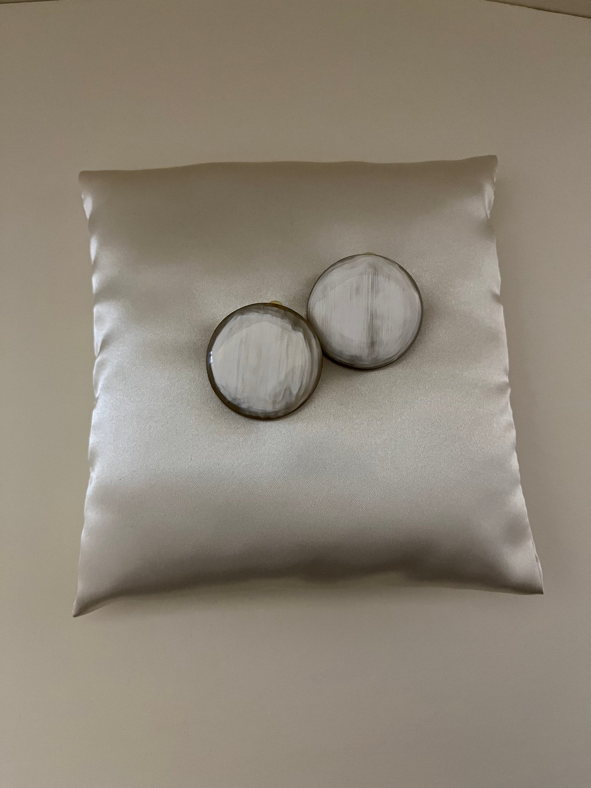Coppia di orecchini bottone in corno bianco. Caratterizzati da una pratica chiusura a clip. Orecchini eleganti e raffinati, adatti a tutti gli stili.