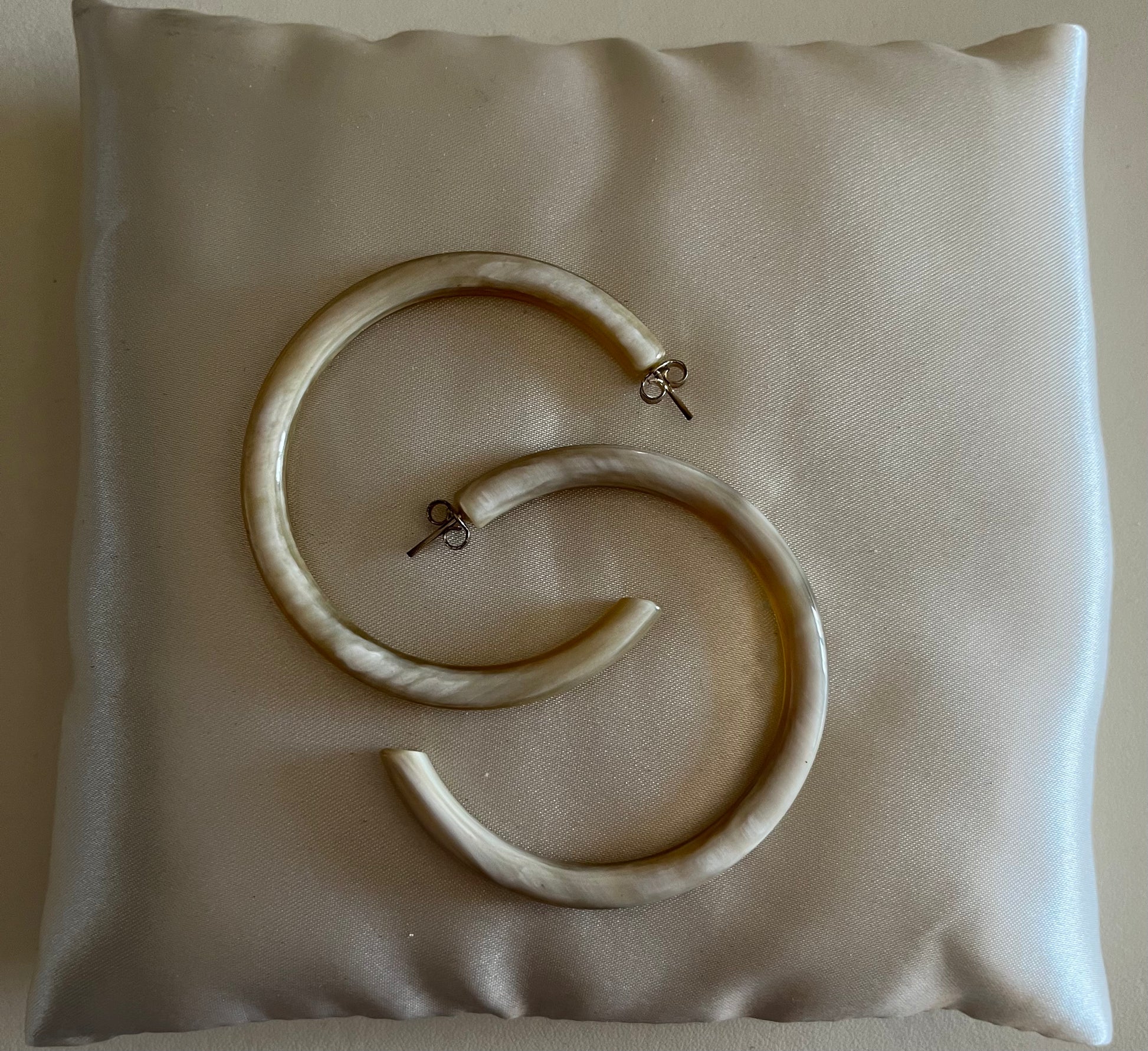 Coppia di orecchini a forma di C in corno bovino tinto. Leggerissimi e unici nel loro genere.